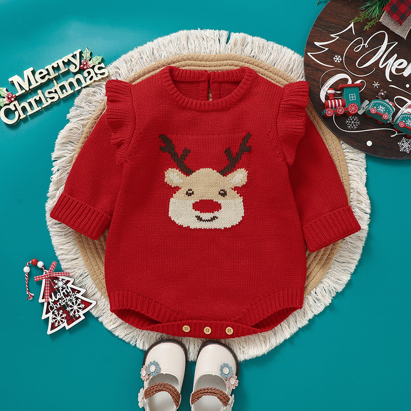 Newborn Reindeer Knitting Romper