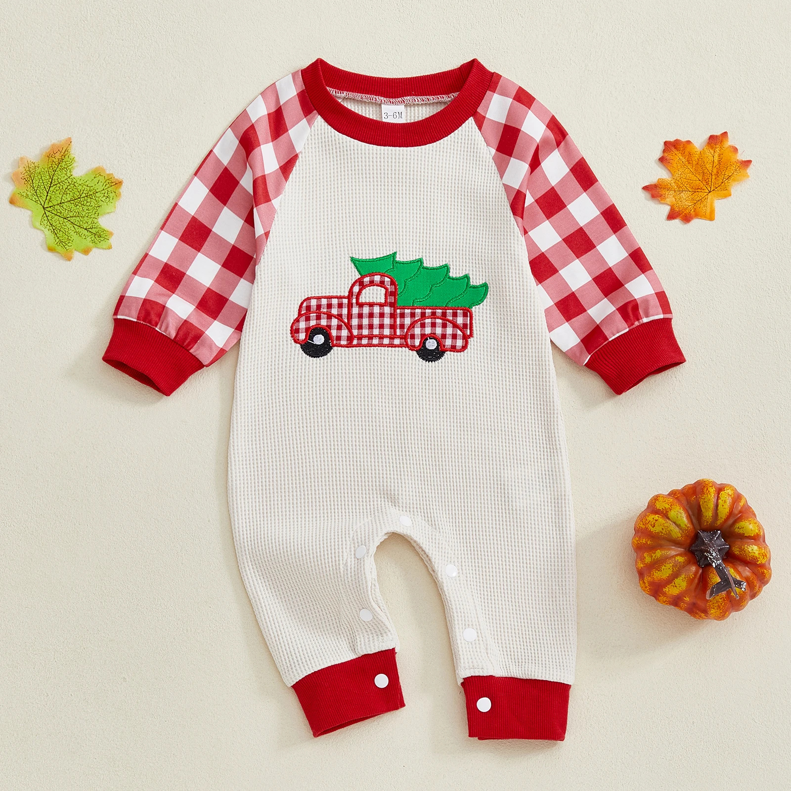 Newborn Christmas Car Checkered Jumpsuit
